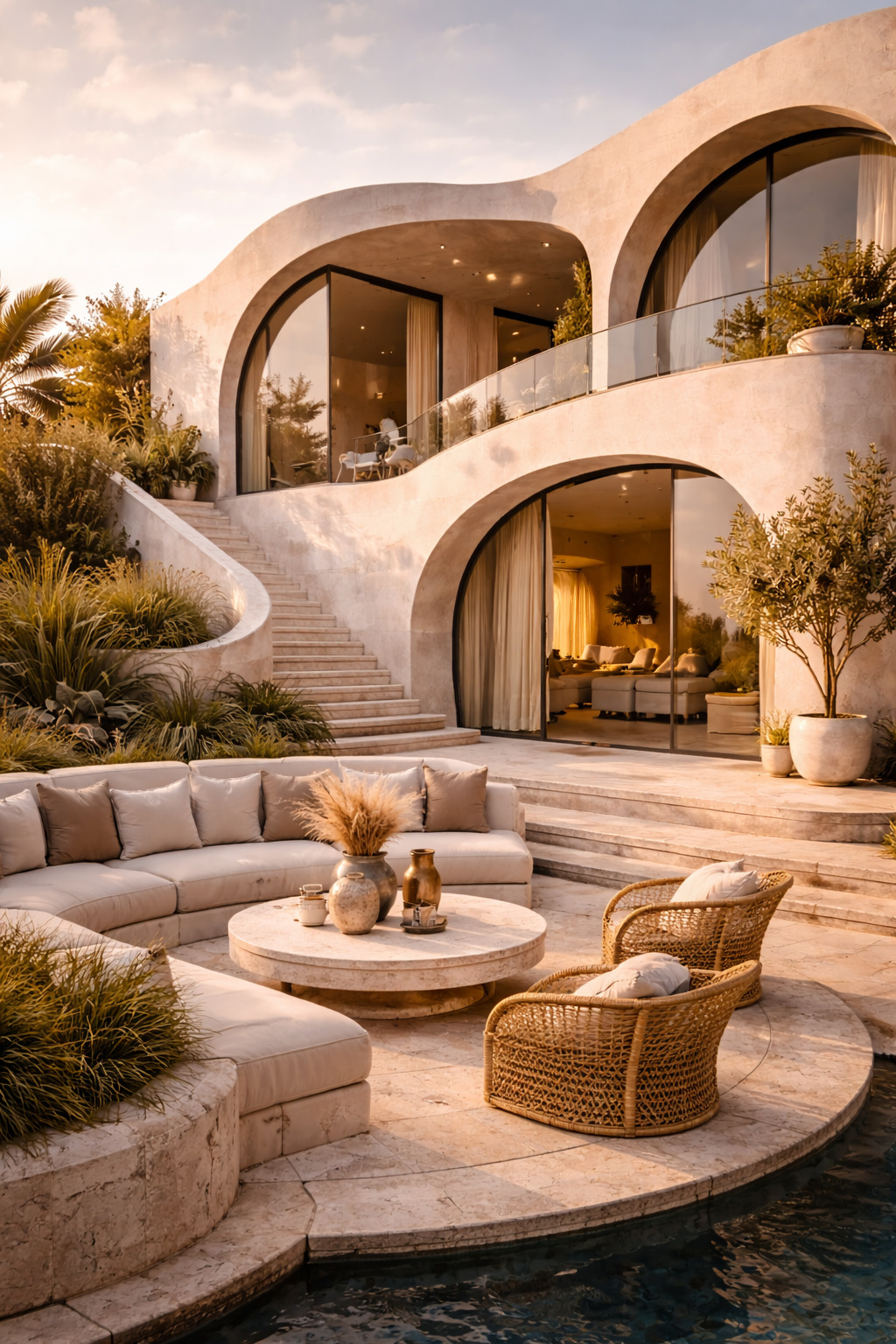 Chúng tôi sử dụng hệ khung thép siêu mảnh giấu kín trong kết cấu bê tông, cho phép tạo ra những đường nét thanh thoát như những đường chỉ khâu, tối giản hóa mọi rườm rà để tôn vinh sự tinh khiết của hình thể.