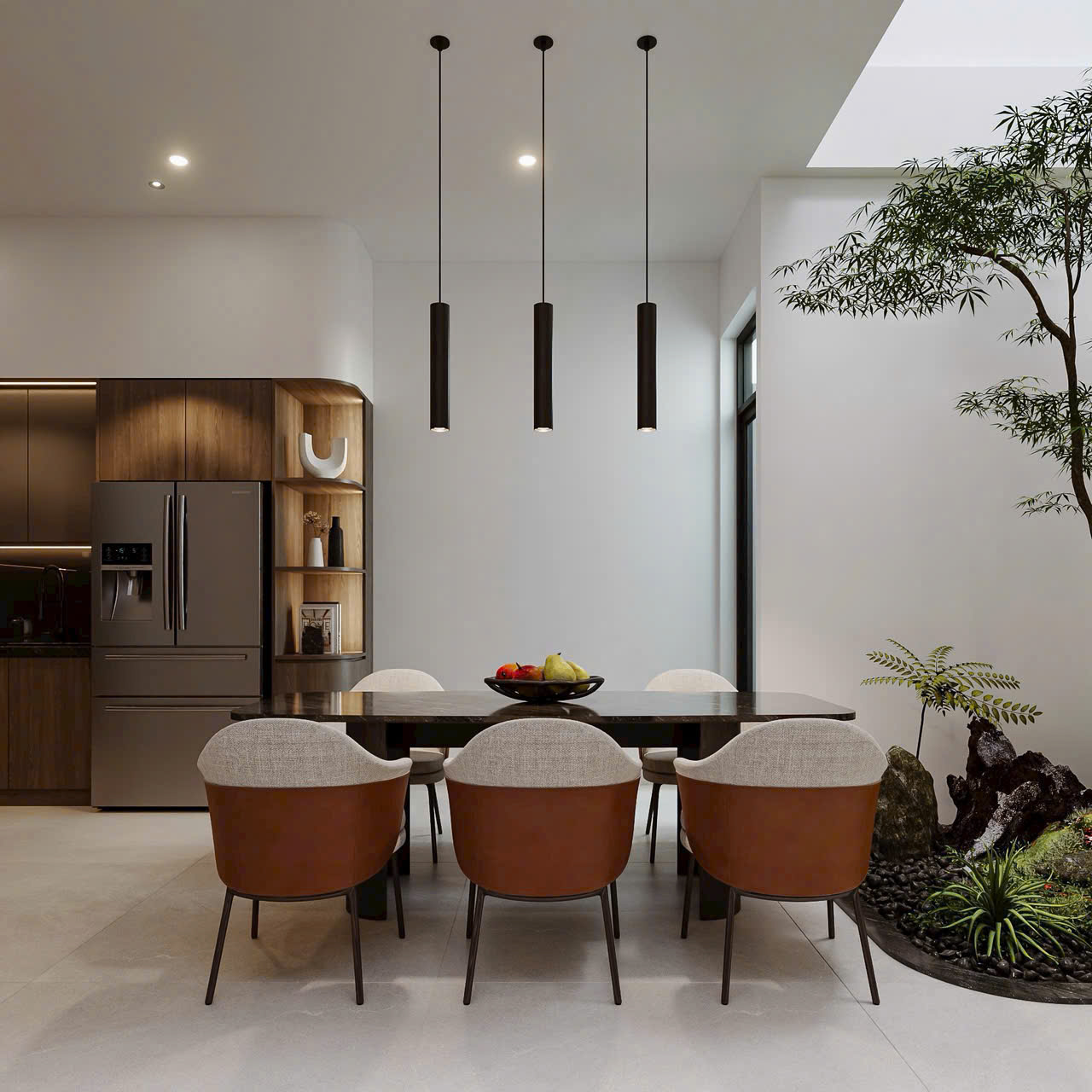 Sử dụng giếng trời để đưa ánh sáng tự nhiên vào tâm nhà, nuôi dưỡng sức khỏe tinh thần.